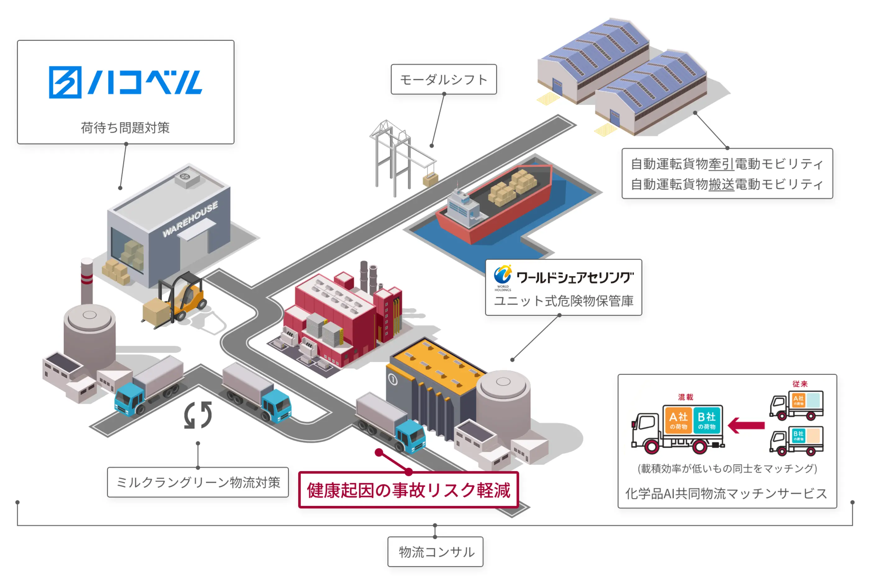 We have both dangerous goods warehouses and poisonous and deleterious goods warehouses, as well as an automated multi-level warehouse for hazardous materials located in Japan to reduce the risk of accidents. For optimal storage, handling, and delivery of dangerous or poisonous substances, we rely on a coordinated partner network with skilled knowledge of, and appropriate equipment for, each step of the process.
